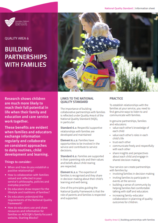 Quality Area 6: Building Partnerships with Families